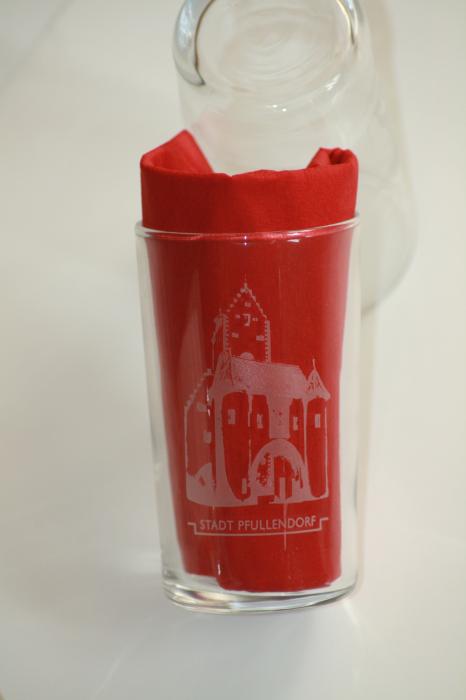 Genießen Sie Wein aus diesem schönen Weinglas (0,1l) und lassen Sie sich vom eingravierten Obertor an Pfullendorf erinnern.